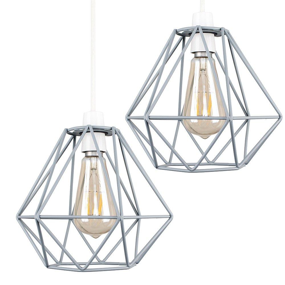 ValueLights Jesmond Pair of Grey Ceiling Pendant Shade
