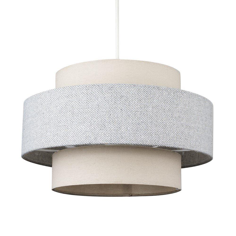Light Grey Modern Ceiling Light Shade Pendant Easy Fit 2 Tier Fabric Lamp Shade