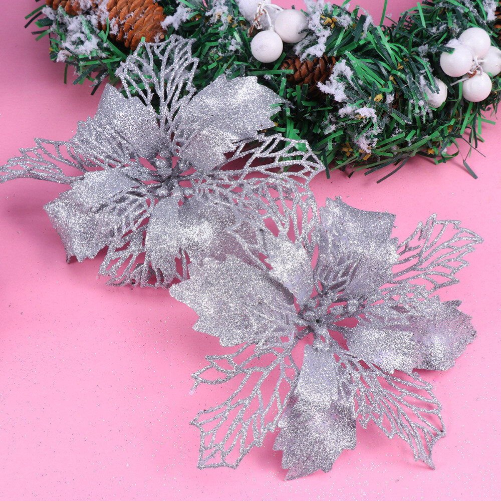 12 Pcs Grey Flowers for Christmas Tree Fireplace Garland Decorations