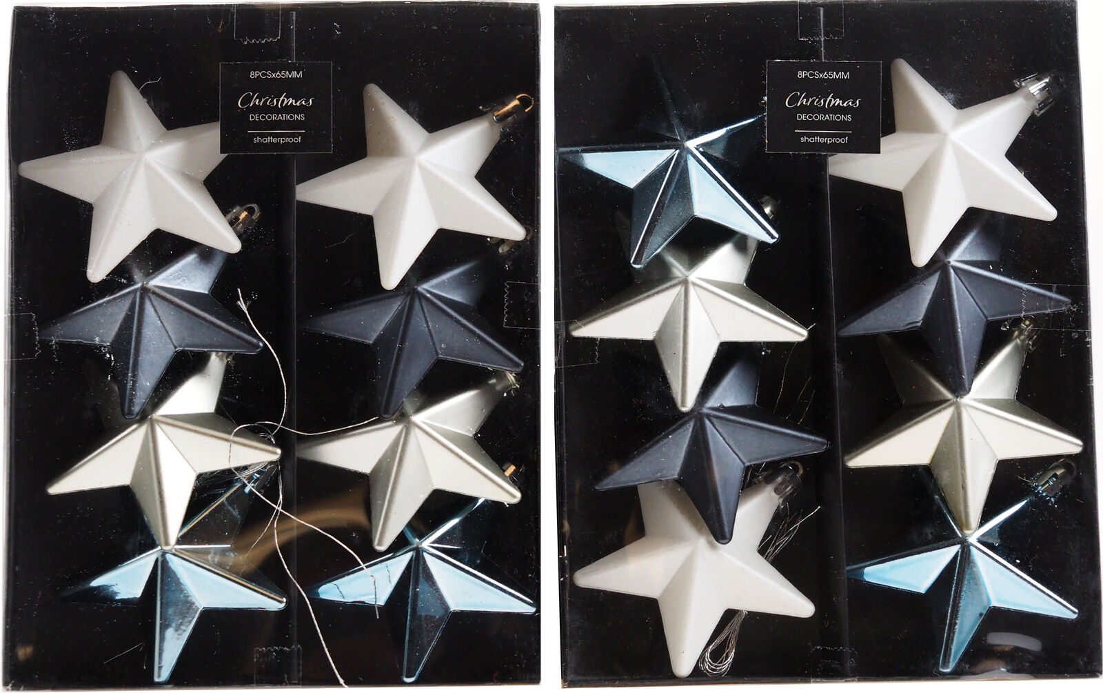 Navy Grey White Star Christmas Tree 6cm Baubles Decorations (Set of 16)