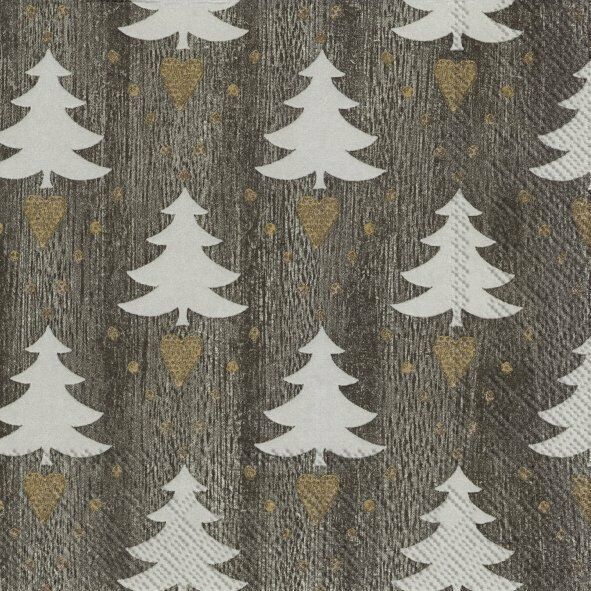 LITTLE LOVELY TREES grey Christmas Tree paper 33cm square 3 ply napkins 20 pk