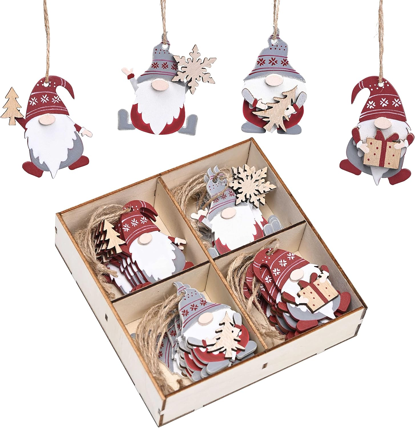 24Pcs Nordic Hut Red and Grey Christmas Tree Decorations, Wooden Christmas Hangi