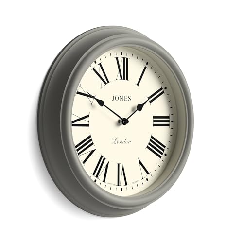 Jones Clocks? Supper Club wall clock | Large classic round clock | 40cm | Mid grey | Roman numerals |Traditional design ideal for kitchen or living