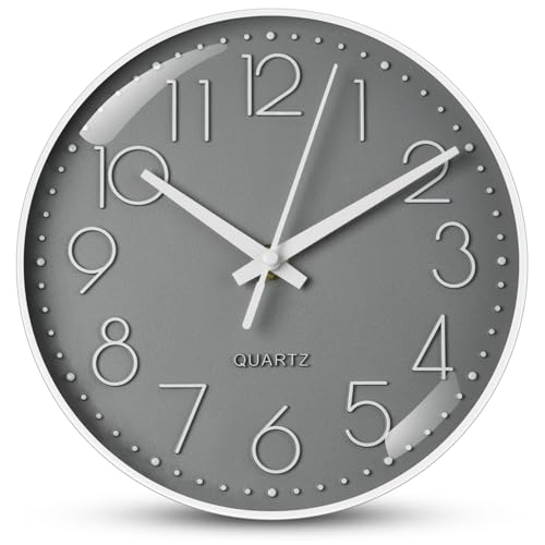 Wall Clock 12" Silent Non-Ticking Modern Wall Clocks Battery Operated for Office, Home, Bathroom, Kitchen, Bedroom, School, Living Room White (Grey clock)