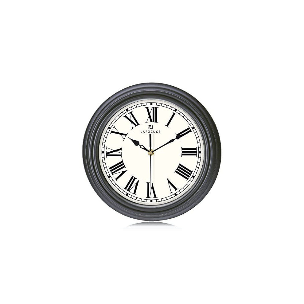 Lafocuse Classic Retro Black Grey Wall Clock 12 Inch Silent Roman Numerals Modern Quartz Clocks for Living Room Décor Kitchen Bedroom