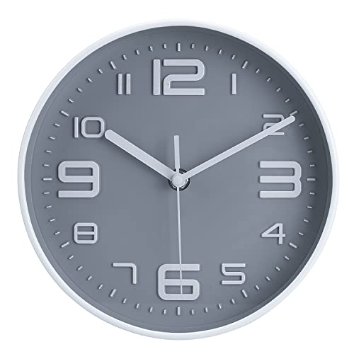 SURPN Wall Clock, Silent Non Ticking, 8 Inch Small Wall Clocks, Battery Operated Decorative Modern Round Wall Clock for Office, Home, Bathroom, Kitchen, Bedroom, School, Living Room - Grey