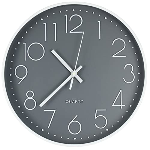 jomparis Quality Silent & Non Ticking Quartz Sweep Round Wall Clock 12 Inches Grey Modern Decorative Clock for Kitchen Home Living Room Bedroom School