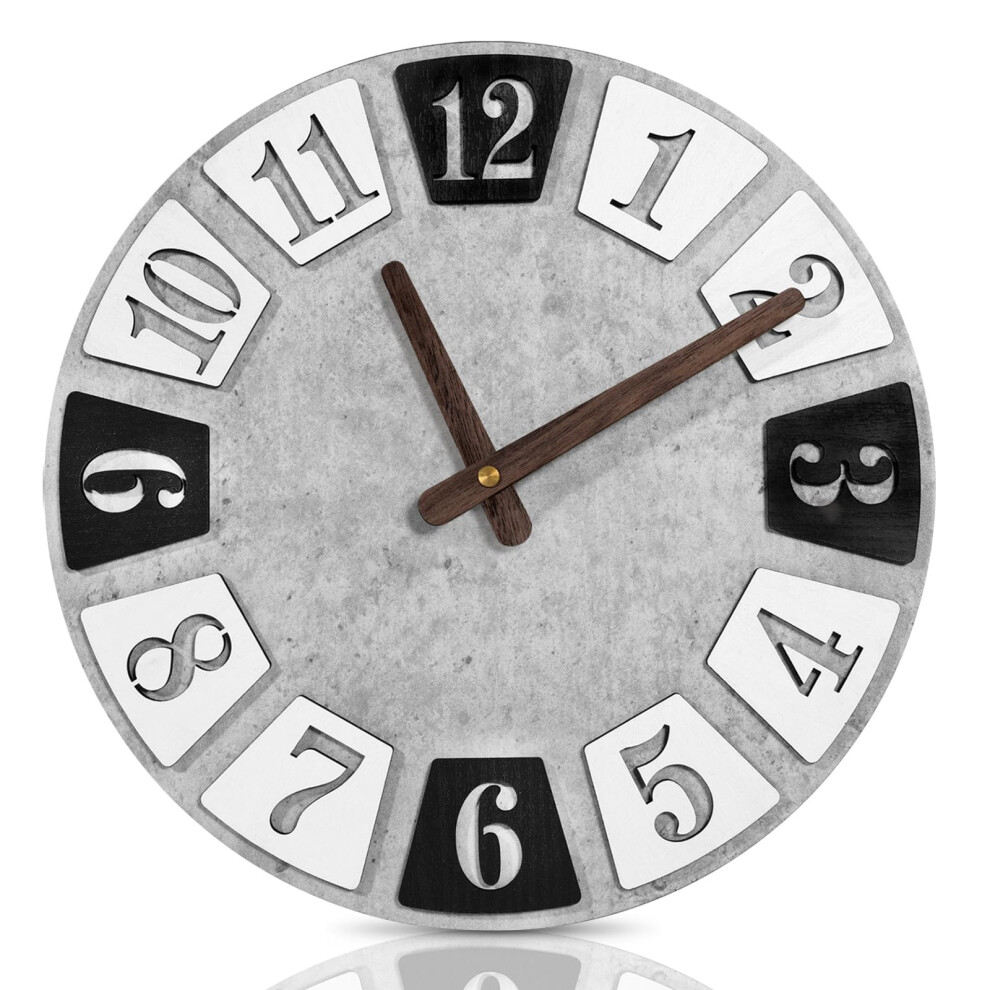 Wooden Wall Clock 30 cm Grey Modern Design No Ticking Noise Large Kitchen Living Room Bedroom Office Decor