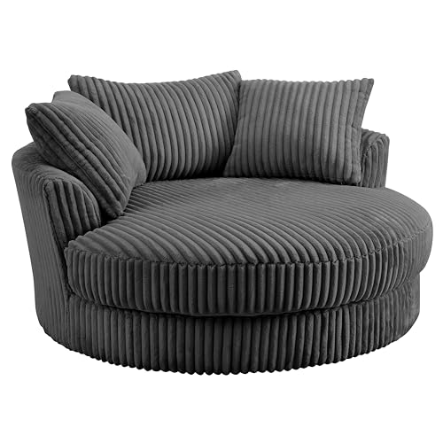 Home Detail Fabric Swivel Sofa Loveseat with Swivel Function, Large Cuddle Chair Sofas in Teddy Jumbo Cord Fabric (Dark Grey Teddy Jumbo Cord)