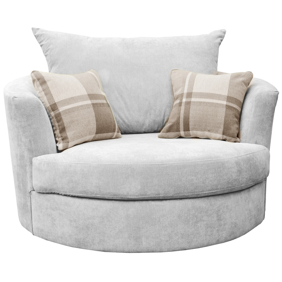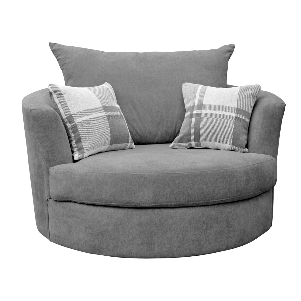Sofas and More Swivel Round Cuddle Chair Fabric Chenille Leather Designer Scatter Cushions (Grey)