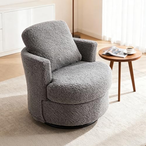 UIXENI Chenille Swivel Cuddle Sofa Chair, Single Tub Chair With Pillow And Cushion, Snuggle Barrel Chair For Adults, Accent Round Armchairs For Living Room, Bedroom (Medium Grey, Teddy)