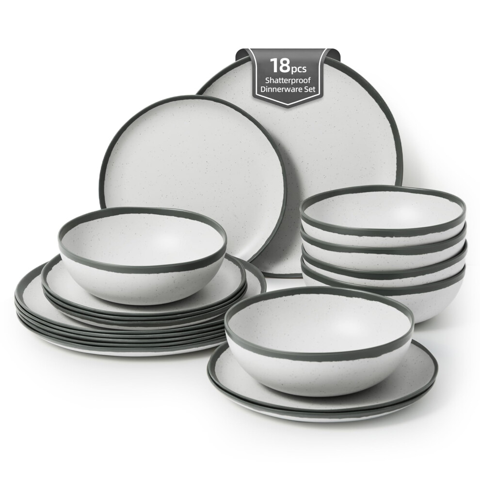 La Joventino 18PCS Vintage Grey Melamine Dinner Set for 6 People, Durable Plates and Bowls Set for Camping, Outdoor, Caravan, Patio and Garden Party