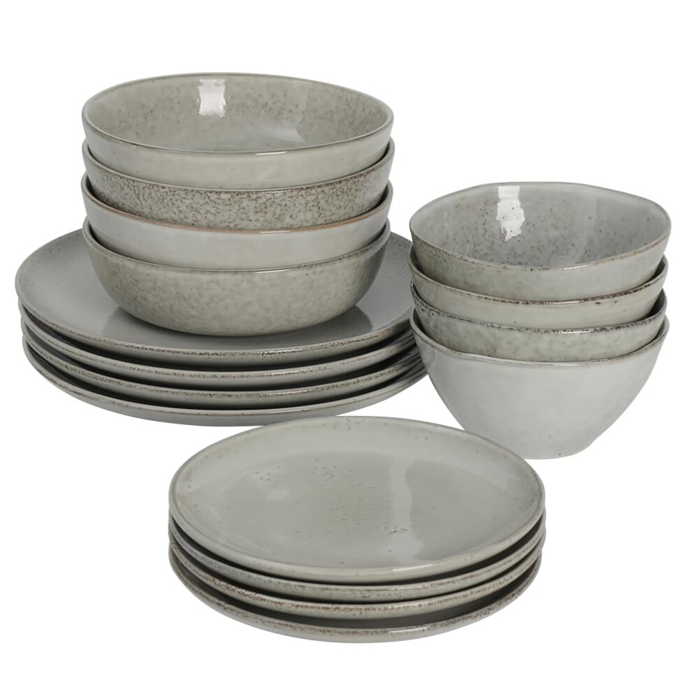 ProCook Oslo Coue Reactive Grey Stoneware Dinner Set Stylish Dishwasher, Oven & Microwave Safe Modern Dinnerware - 16 Piece, 15.5/20/28 cm