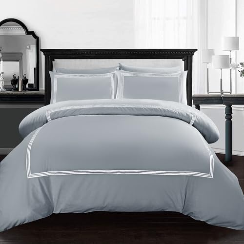 AR ware Grey Duvet Cover King Set – 3 piece luxury bratta stitch duvet cover sets with pillowcase – breathable microfiber quilt cover, Grey/White