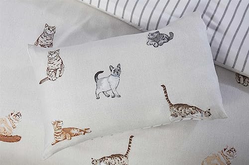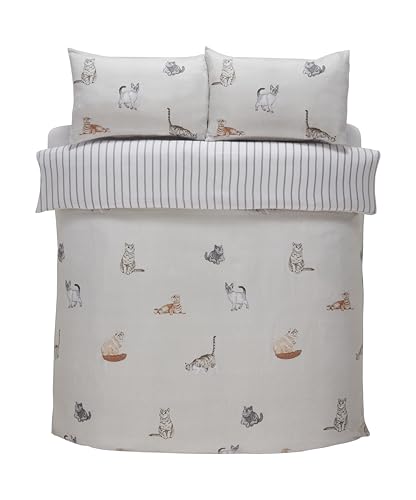 Rapport Home Cats Bedding Set - Purrfect Microfibre 180TC Reversible Double Grey Duvet Cover Set