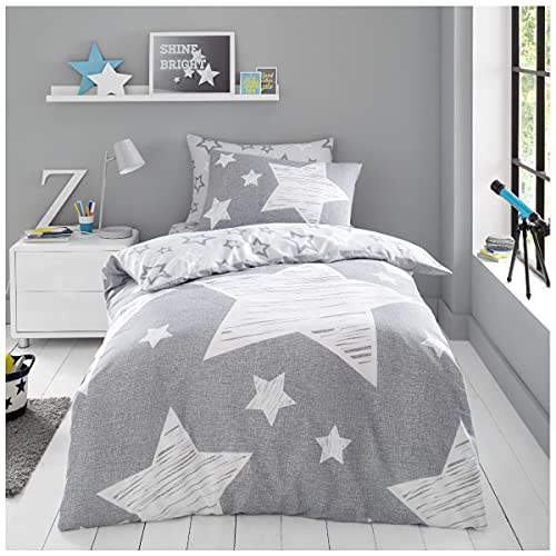 GC GAVENO CAVAILIA Luxury Kids Fitted Sheet Super Star Cover OR Easy Care Children Curtains, Polycotton, Grey, Single Duvet Set