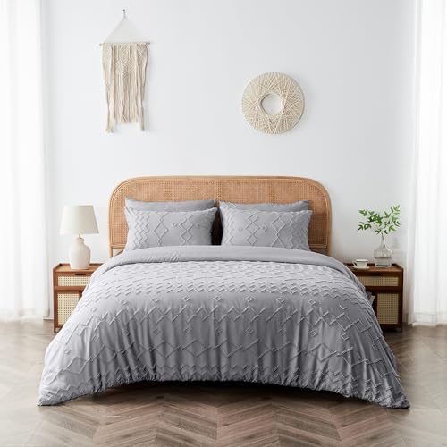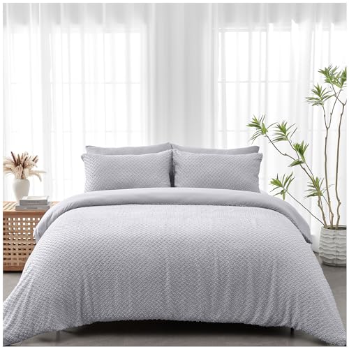 OHS Grey Duvet Double Set Tribal Pinsonic, Decorative Embossed Modern Bedding Luxury Ultra Soft Duvet Quilt Cover Double Bedding with Pillowcases, Grey