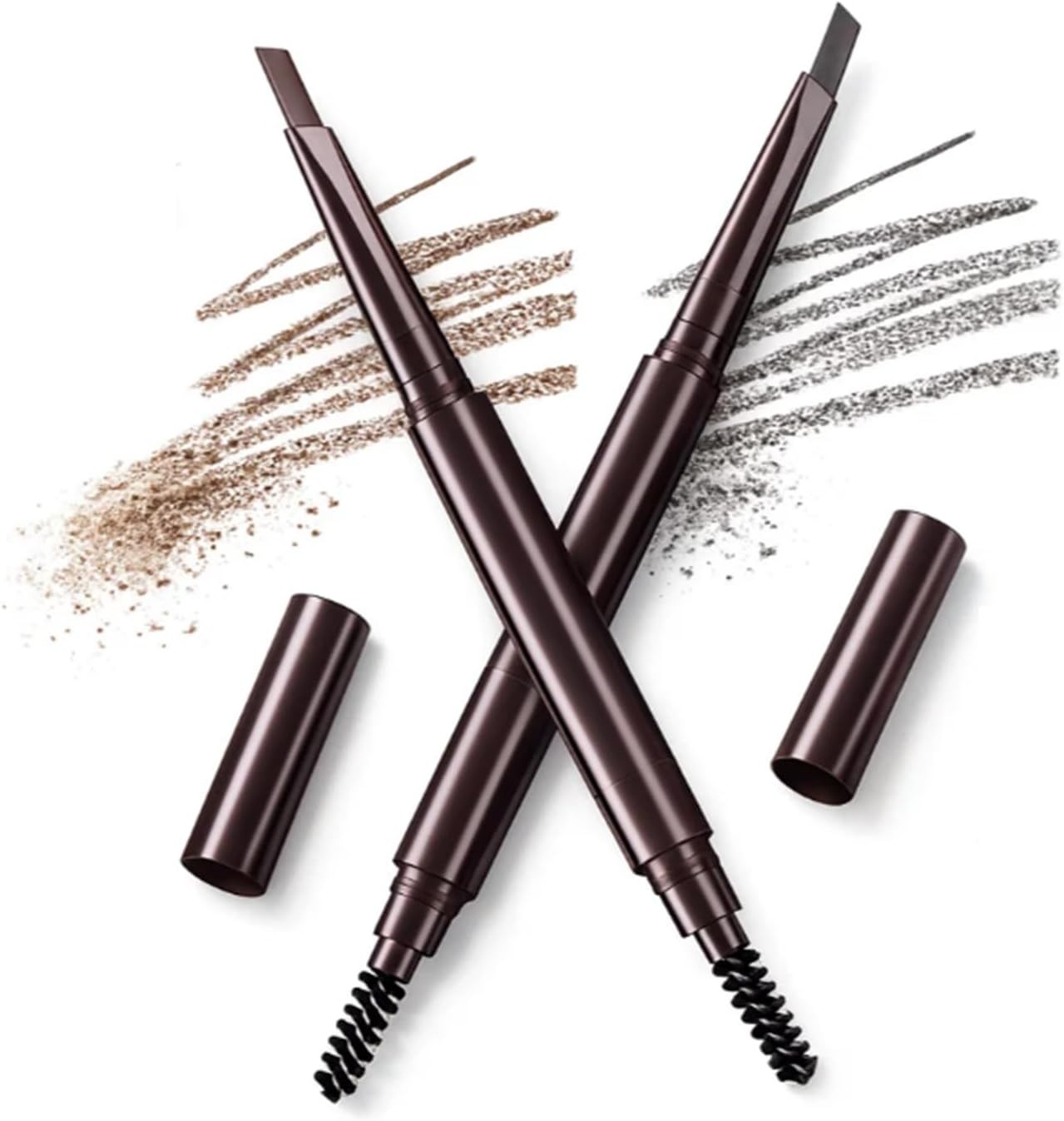 2Pcs Grey Brown Waterproof Eyebrow Pencil and Liner with Natural Hairlike Strokes Long Lasting