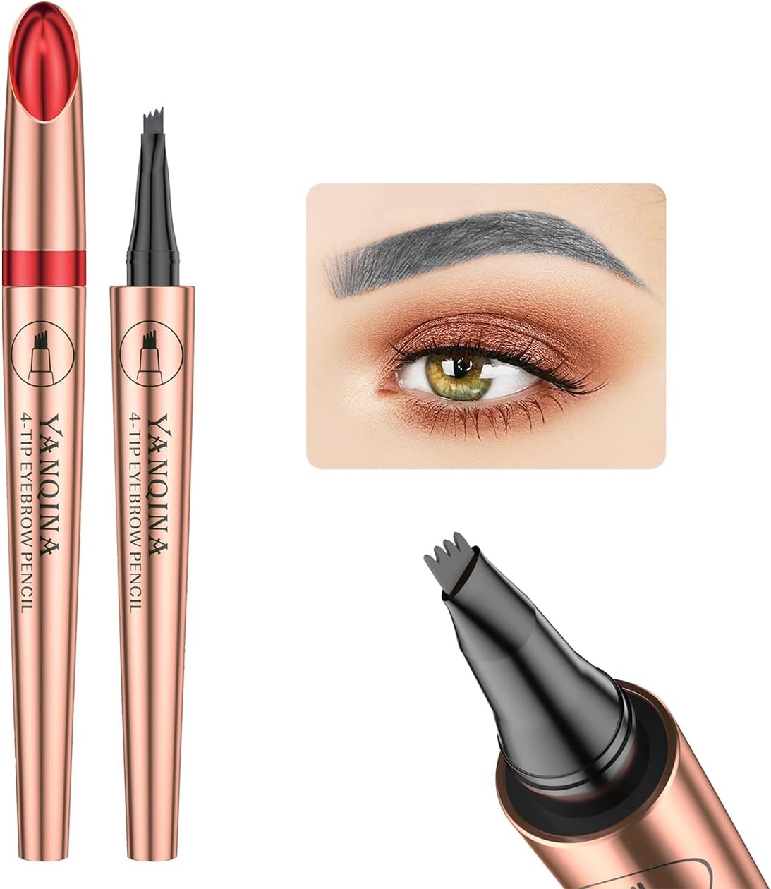 Eyebrow Pencil, Dark Grey Brow Pencil, Waterproof Brow Pen with 4 Micro-Fork Tip