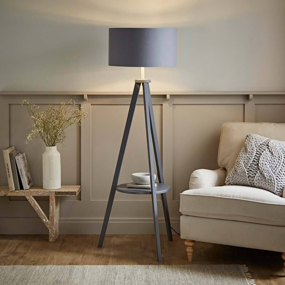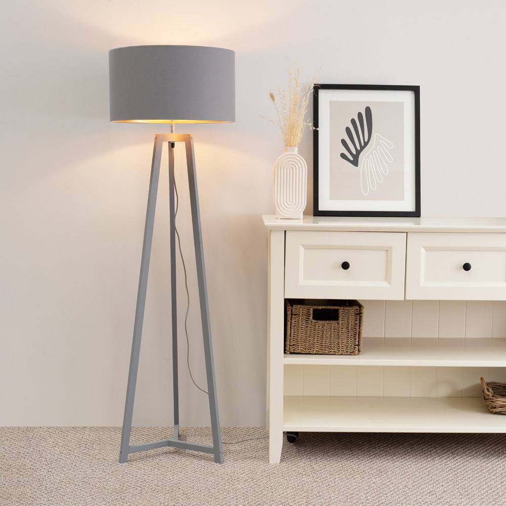 Morrigan Grey Tripod Floor Lamp Large Grey Shade