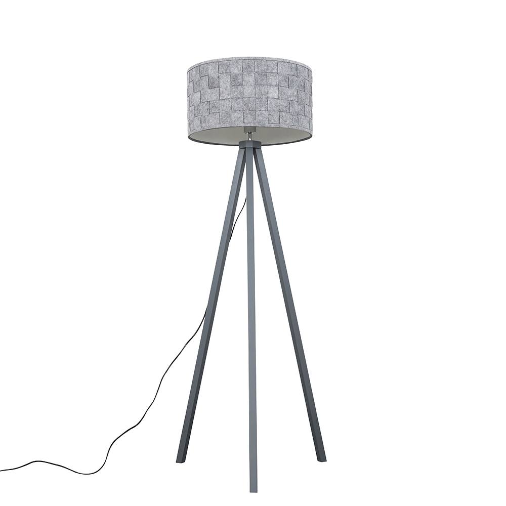 ValueLights Barbro Grey Wood Tripod Floor Lamp with Felt Shade