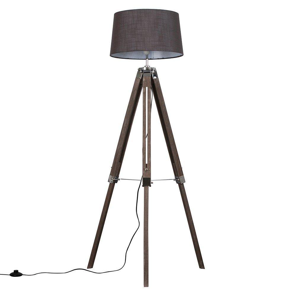 ValueLights Morrigan Grey Wood Tripod Floor Lamp with Fabric Drum Lamp Shade