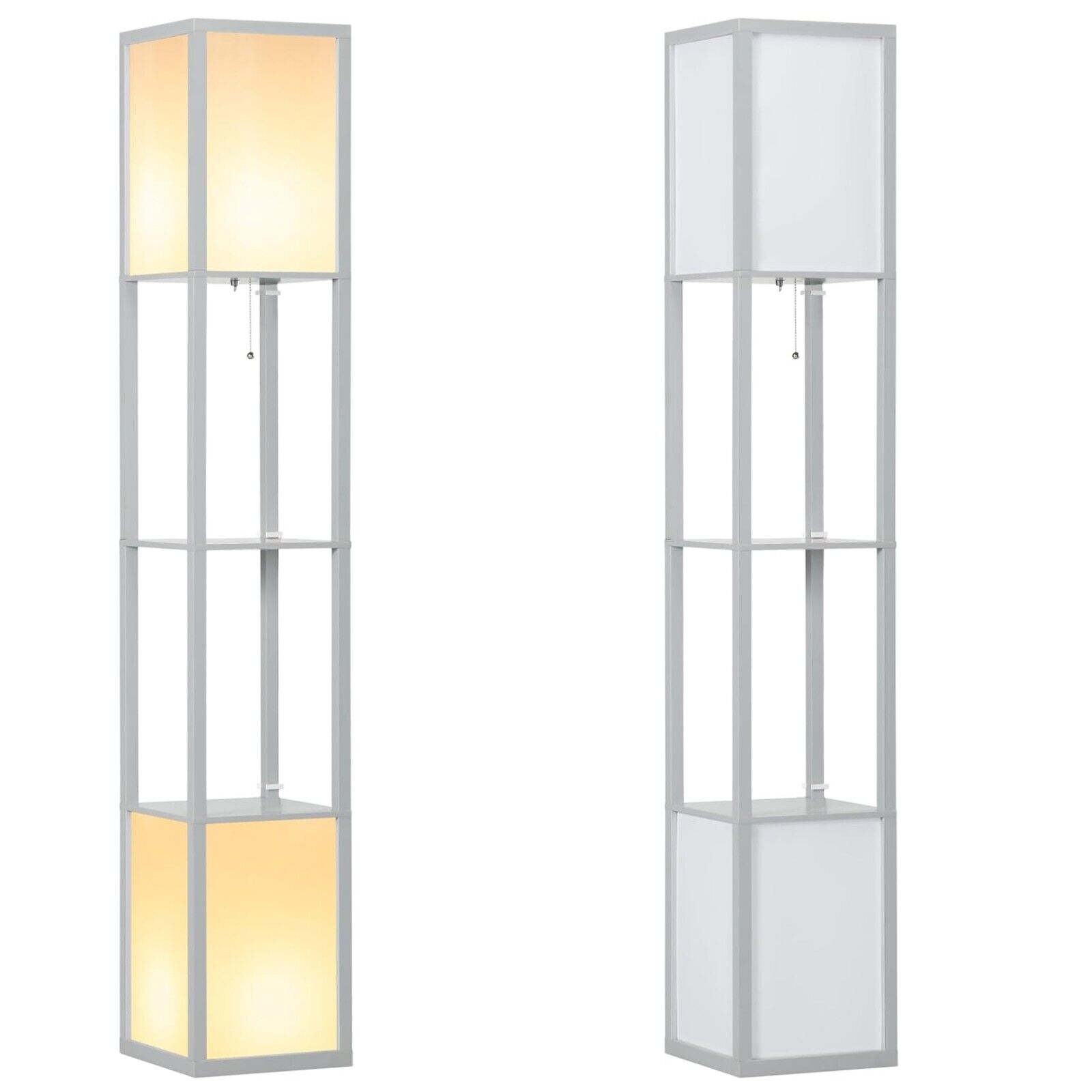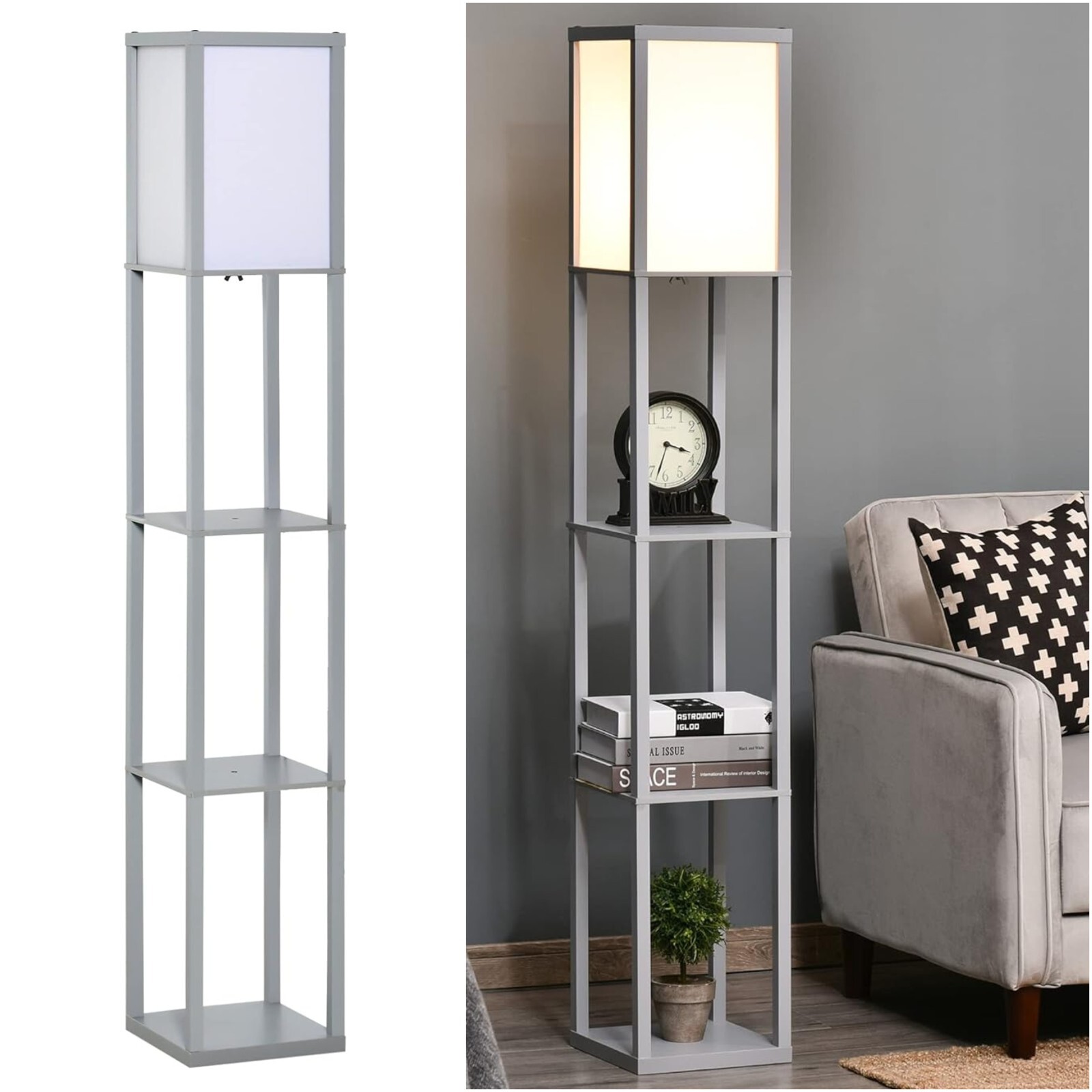 Tall Grey Floor Lamp Shelves Unit Bookcase Square Lampshade 3 Tier Standing Lamp