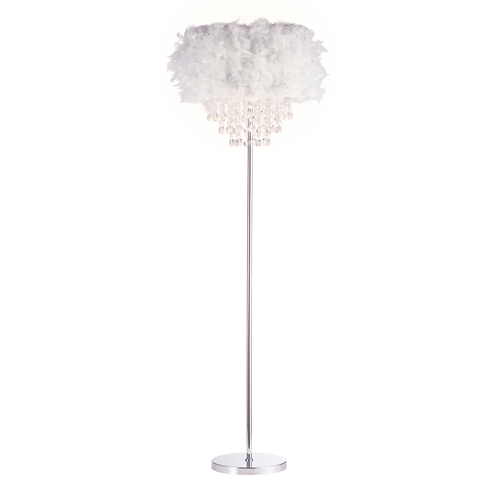Modern Chandelier Style Grey Feather Floor Lamp with Waterfall Drops by Happy...