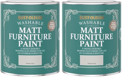 Rust-Oleum Grey Furniture & Skirting Board Paint in Matt Finish - Winter Grey 750ml (Pack of 2)