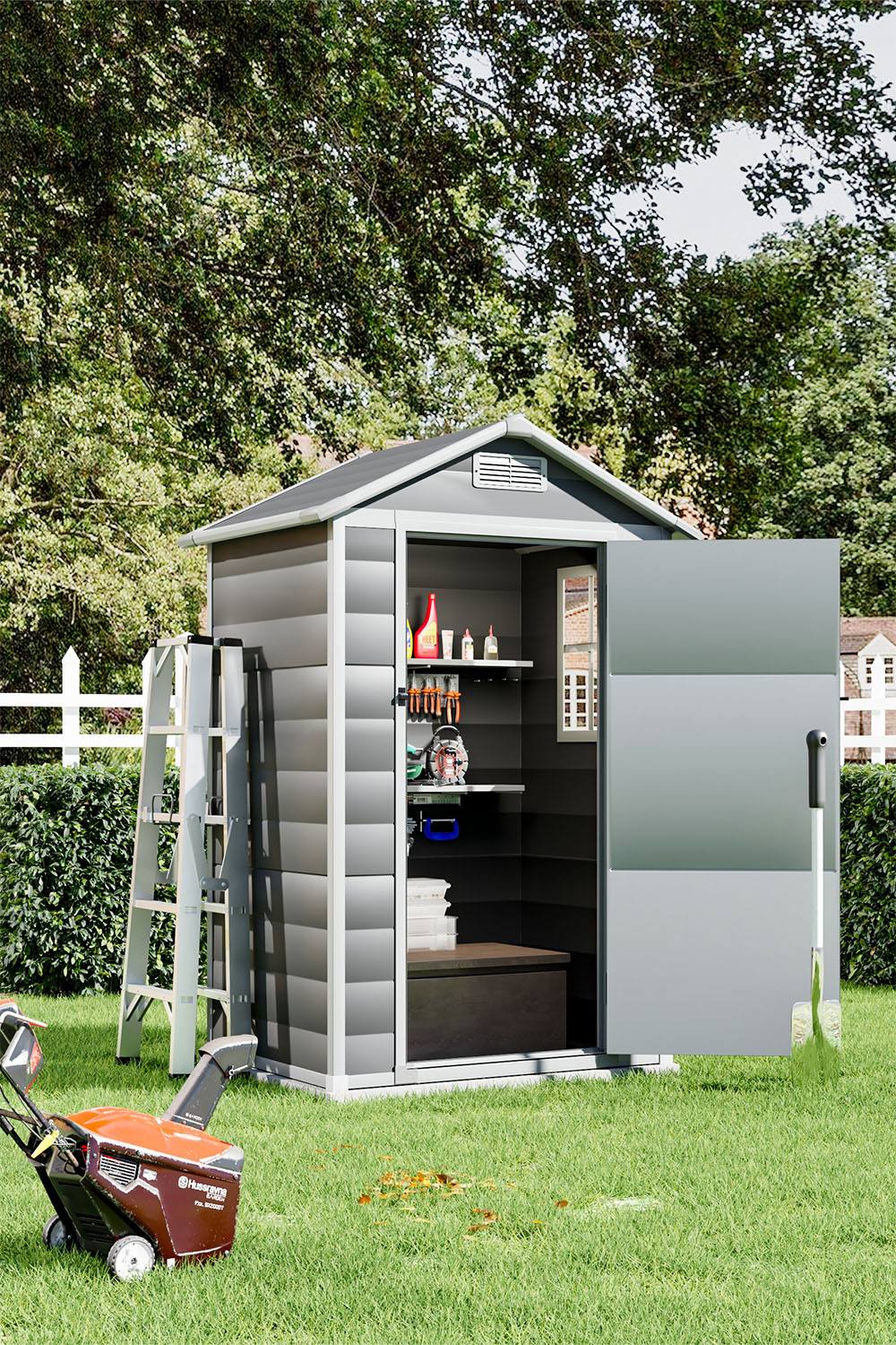 Living and Home 4 x 3 ft Grey Plastic Shed Garden Storage Shed Apex Roof with Hinged Door and Windows