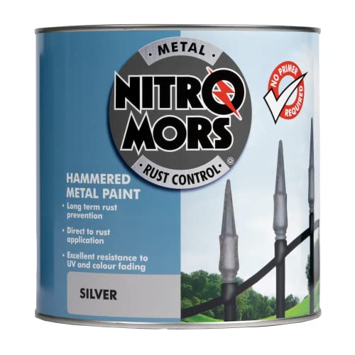 Nitromors Hammered Metal Paint, Silver, UV & Rust Resistant Gloss for Metal Doors, Furniture, Gates, No Primer Needed 2.5 L