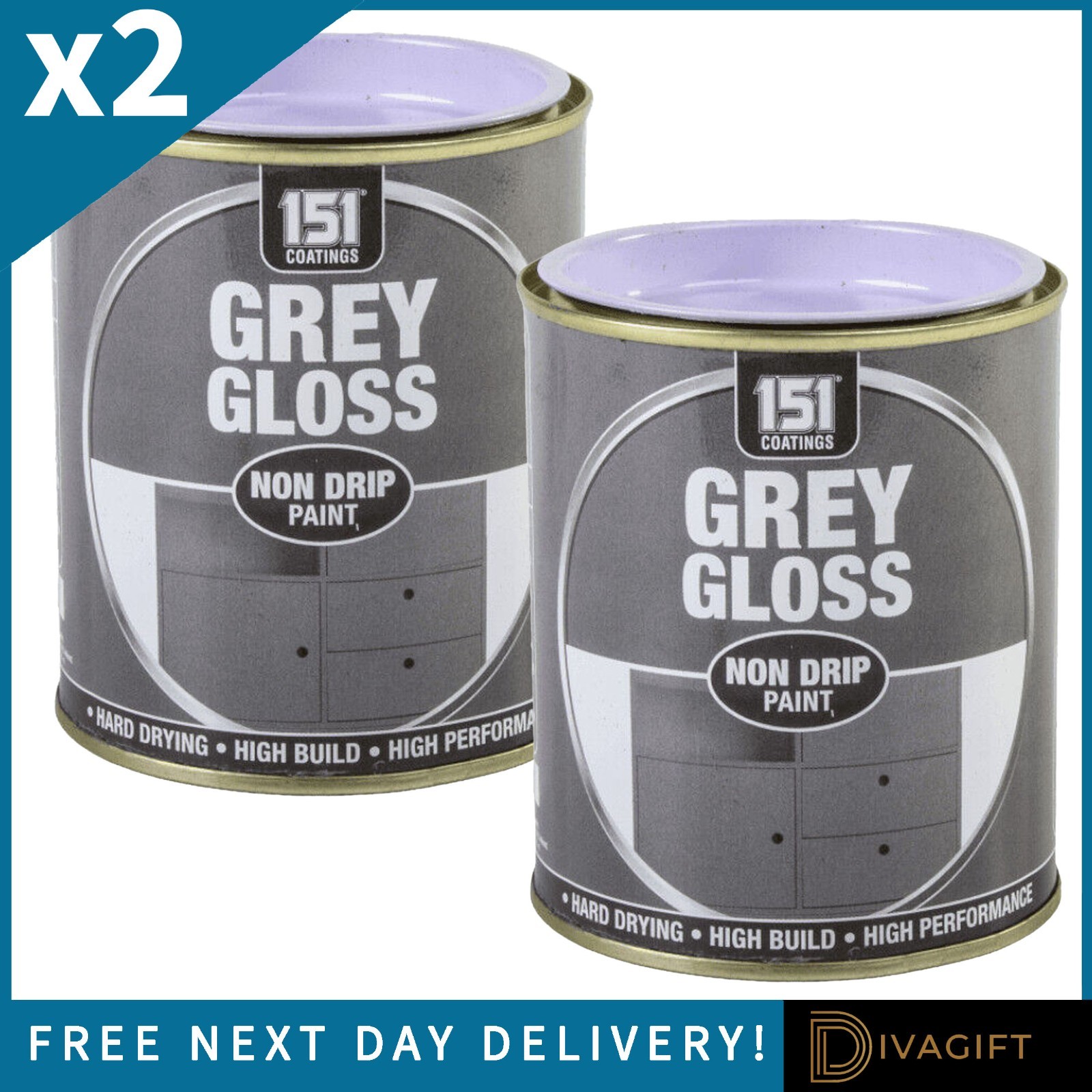 2X 151 Grey Gloss Non-Drip Paint 300ml Hard Drying High Performancer
