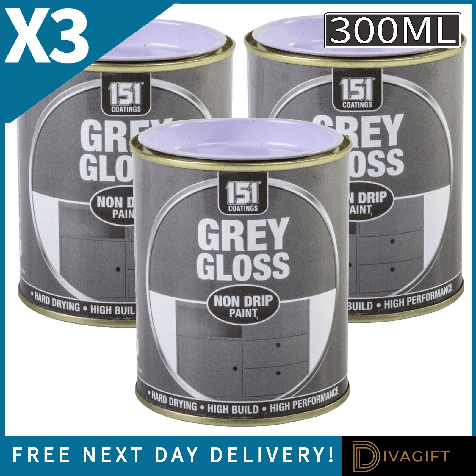 3X 151 Grey Gloss Non-Drip Paint 300ml Hard Drying High Performancer