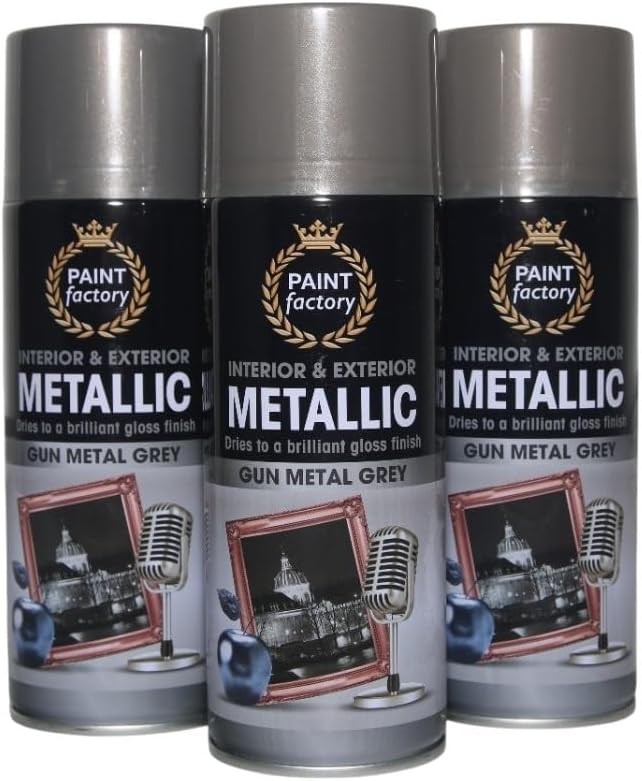 3X Paintgun Grey Metallic Spray Paint Aerosol Auto Matt Gloss Wood Metal 400ml