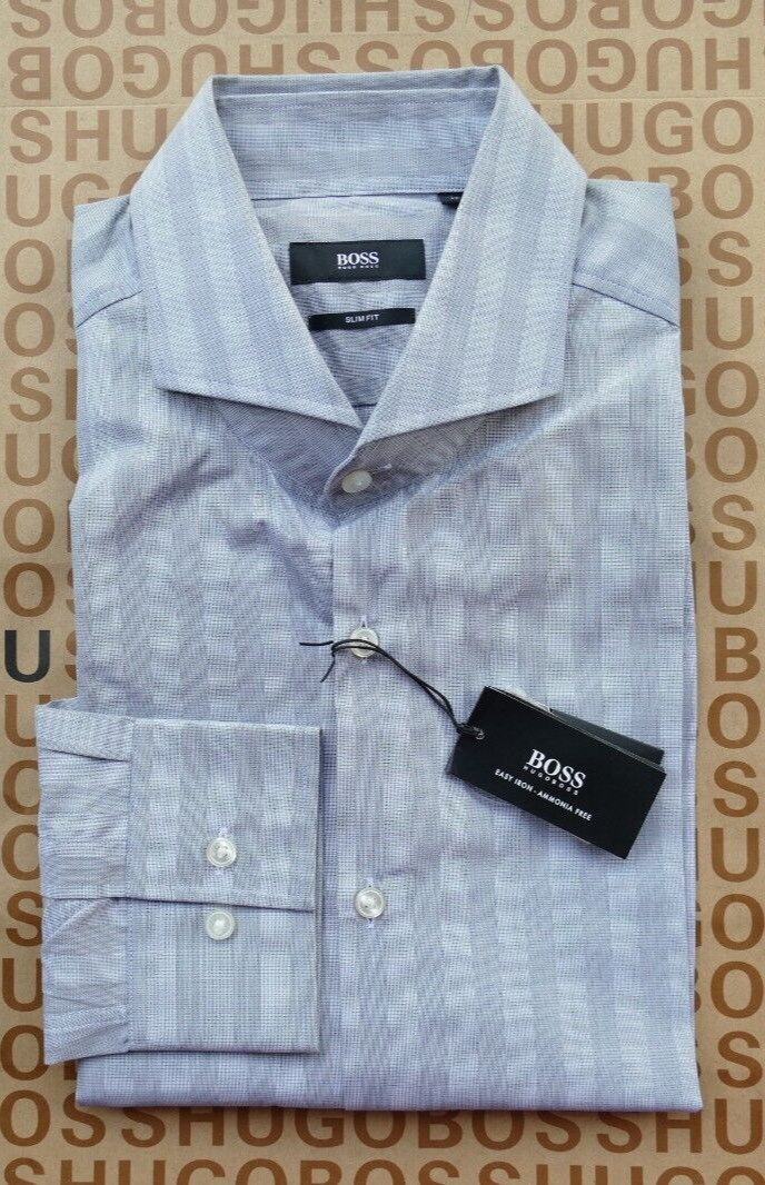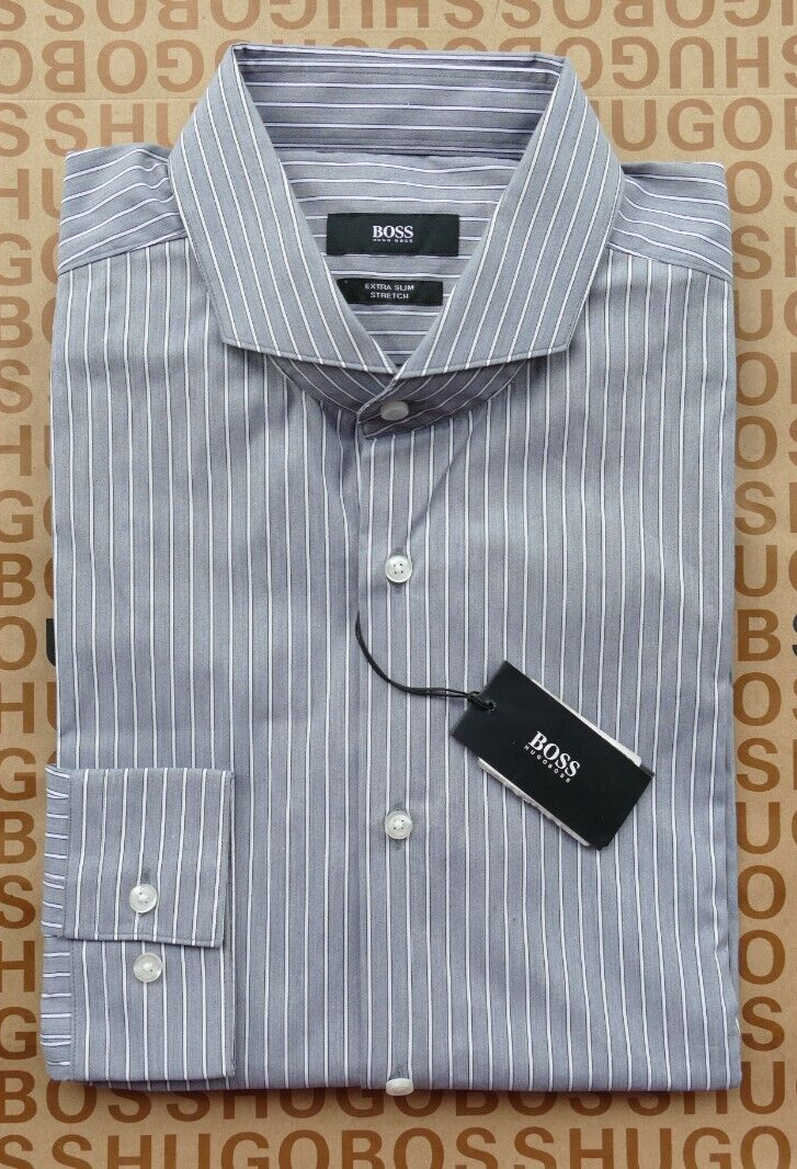 New Hugo BOSS mens grey slim fit stretch striped tie suit shirt XL 16.2 42 £119