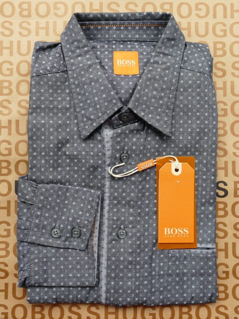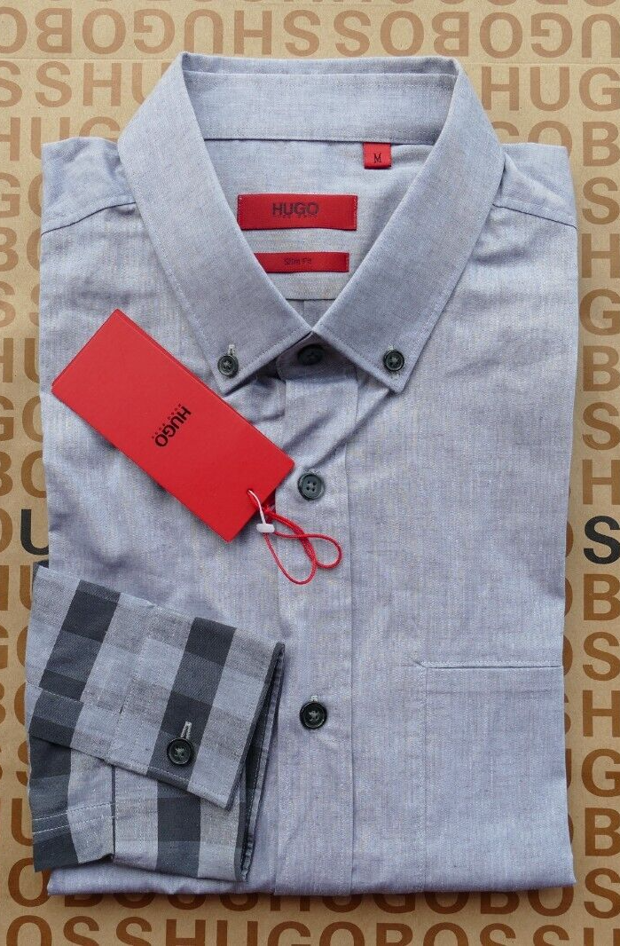 New Hugo BOSS mens grey slim fit designer cotton casual smart suit shirt MEDIUM