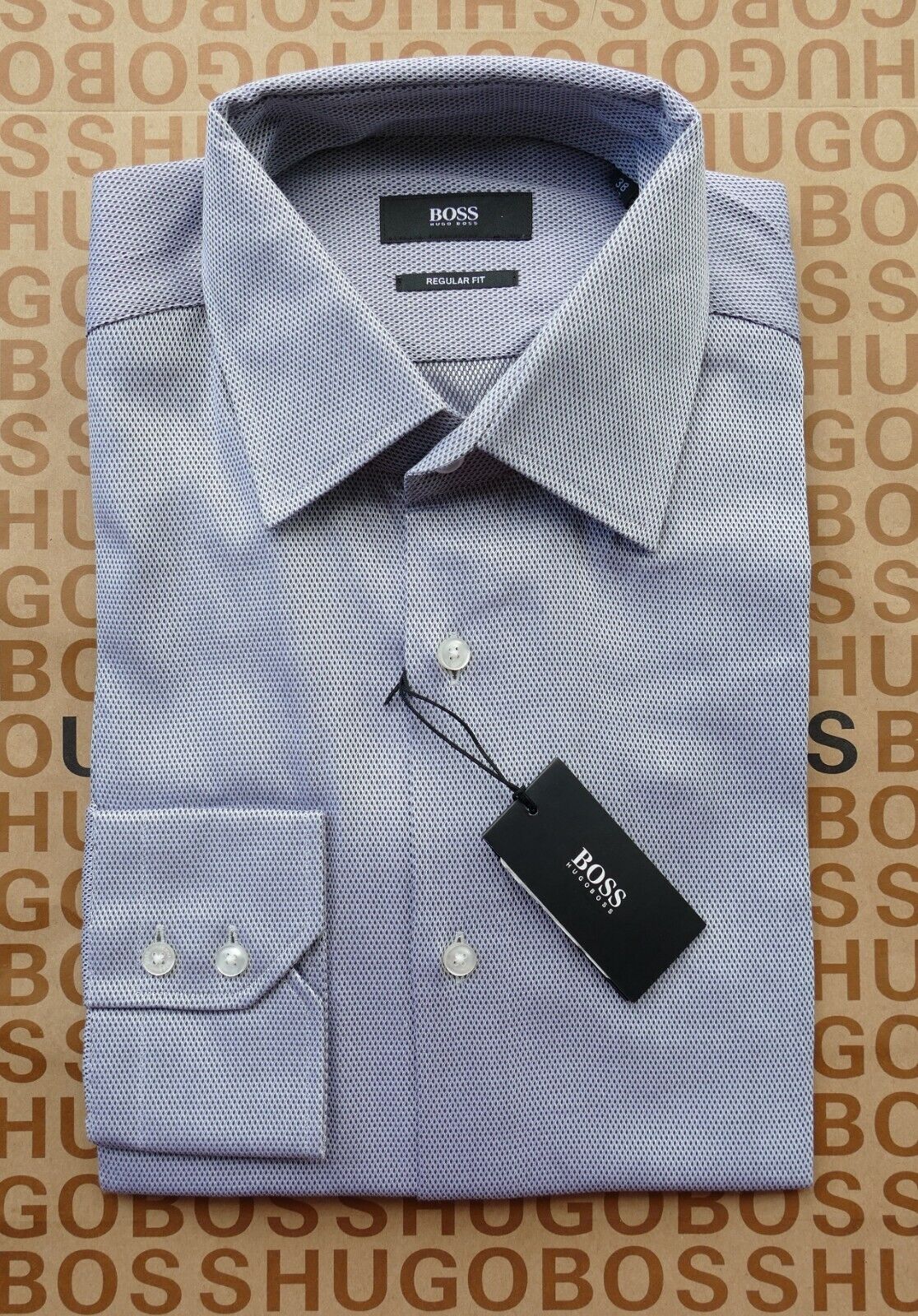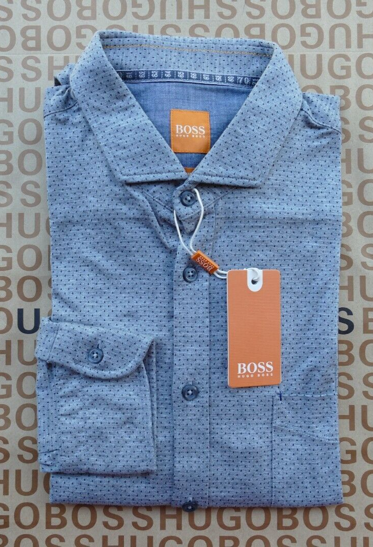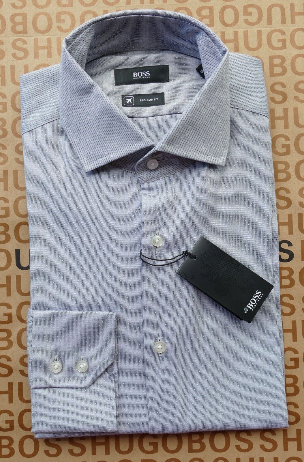 New Hugo BOSS mens grey slim long sleeve cotton casual smart suit shirt MEDIUM