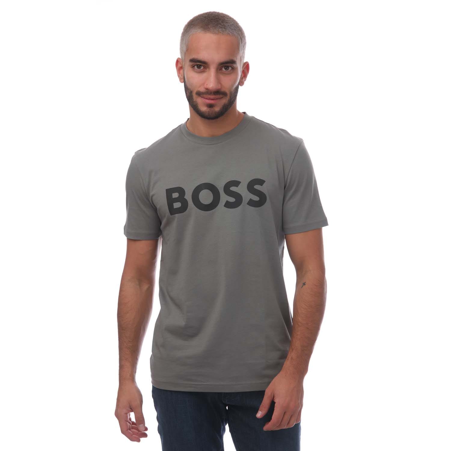 Hugo Boss Mens Thinking 1 Rubber Print Logo T-Shirt in Grey material_cotton - Size Medium