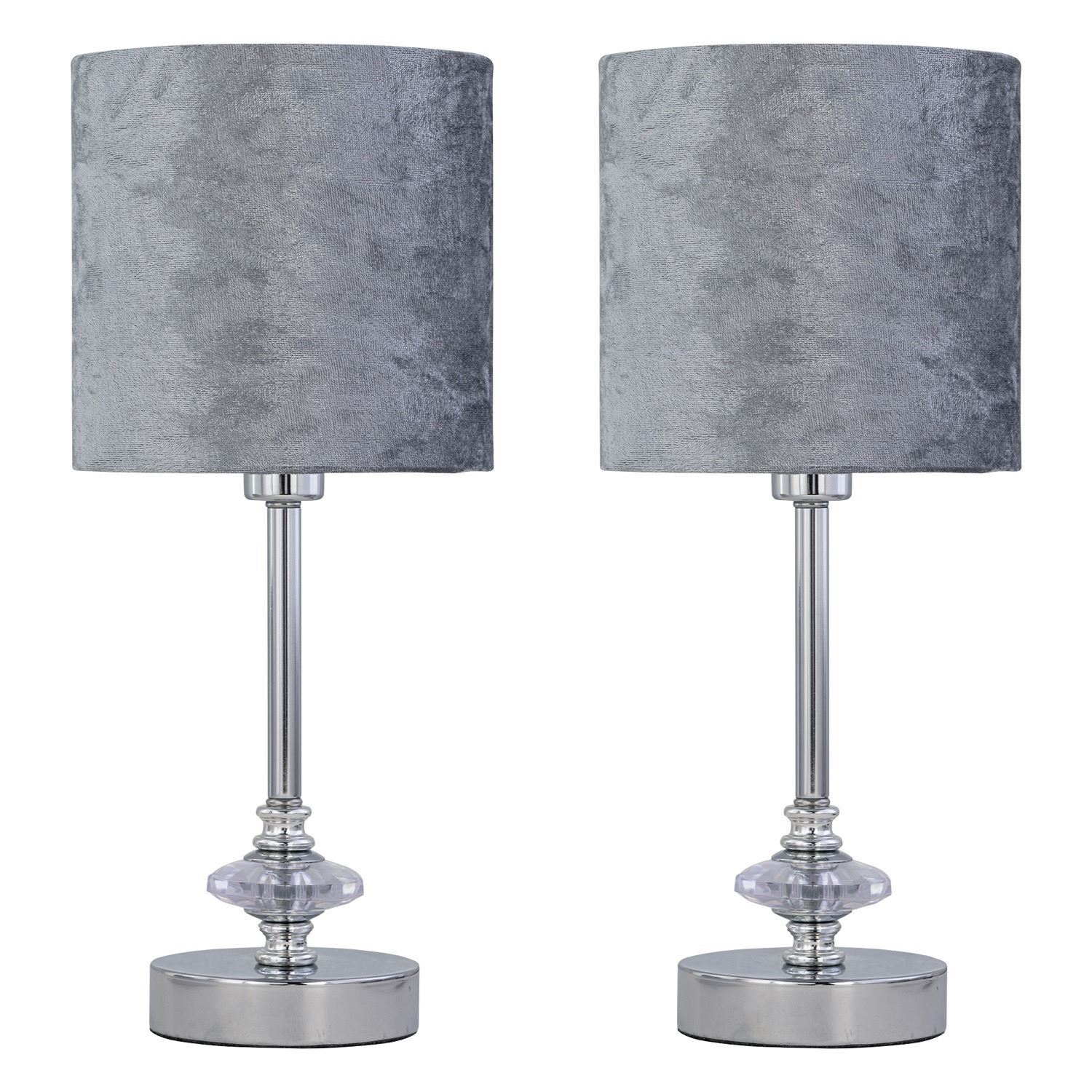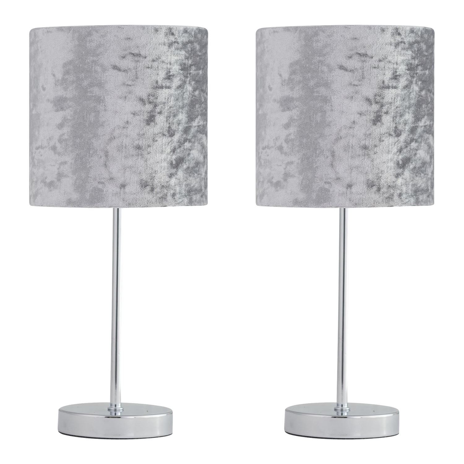 Set of 2 Modern Chrome 35cm Table Lamp Bedside Lights Grey Crushed Velvet Shades