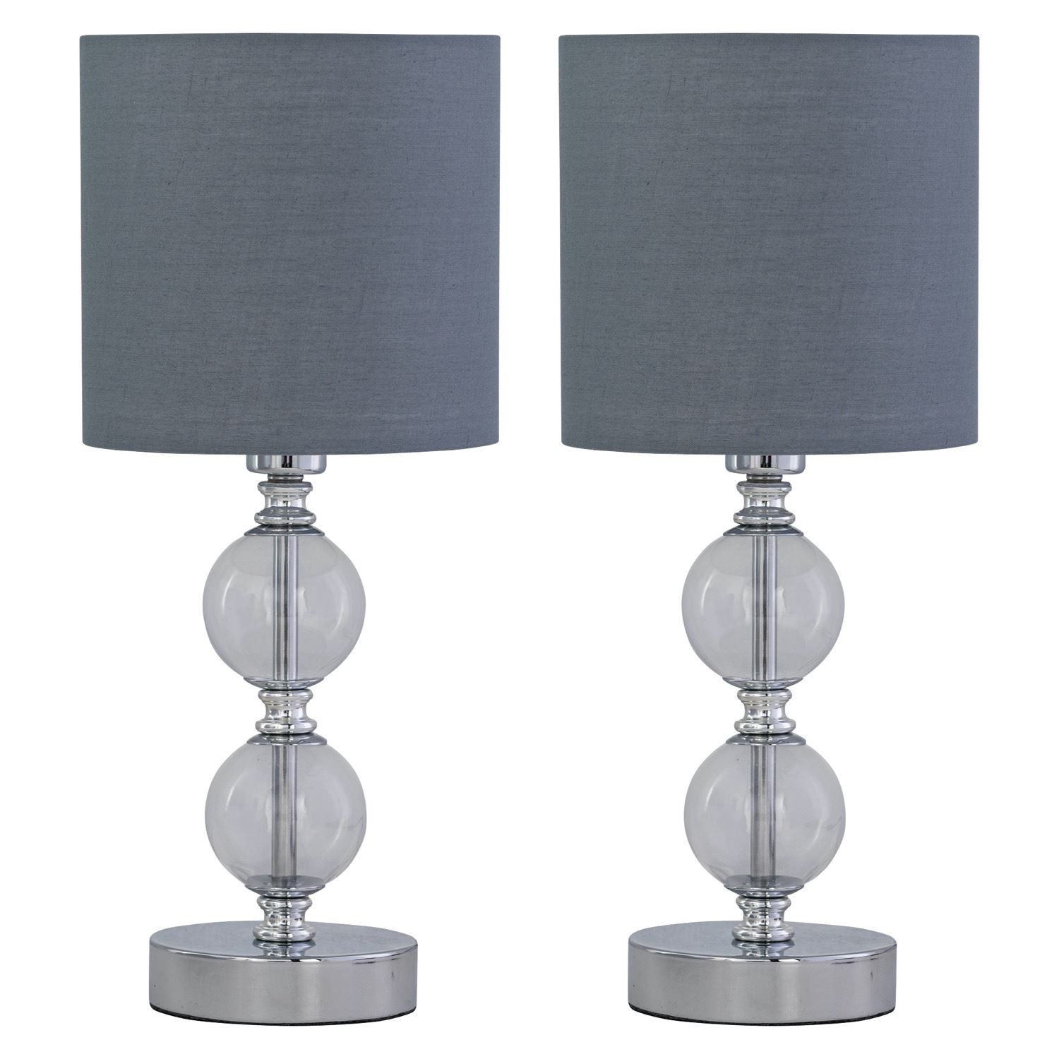 Set of 2 Touch Operated Table Lamp Bedside Light Grey Cotton Shades