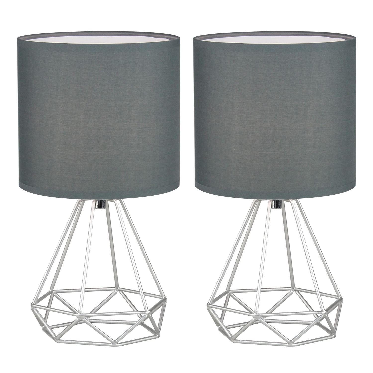 Set of 2 Geometric 32cm Table Lamp Bedside Lights Silver with Grey Shades
