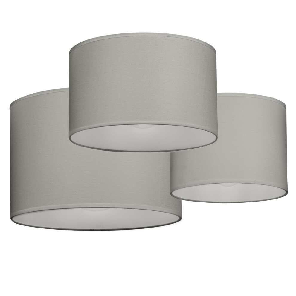 ValueLights Torbery Set of 3 Nesting Easy Fit Ceiling Light Lamp Shades with Bulbs in Light Grey