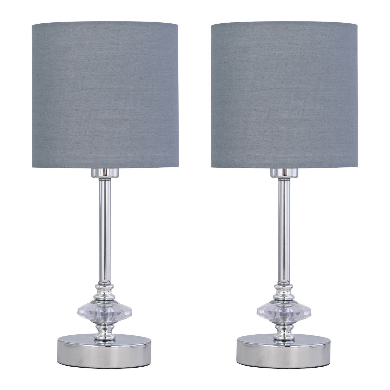 Set of 2 Acrylic Cystal Table Lamp Bedside Light Grey Cotton Shades