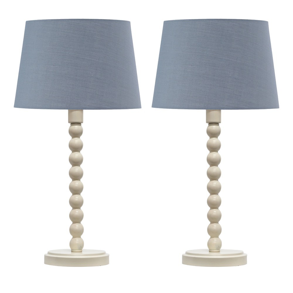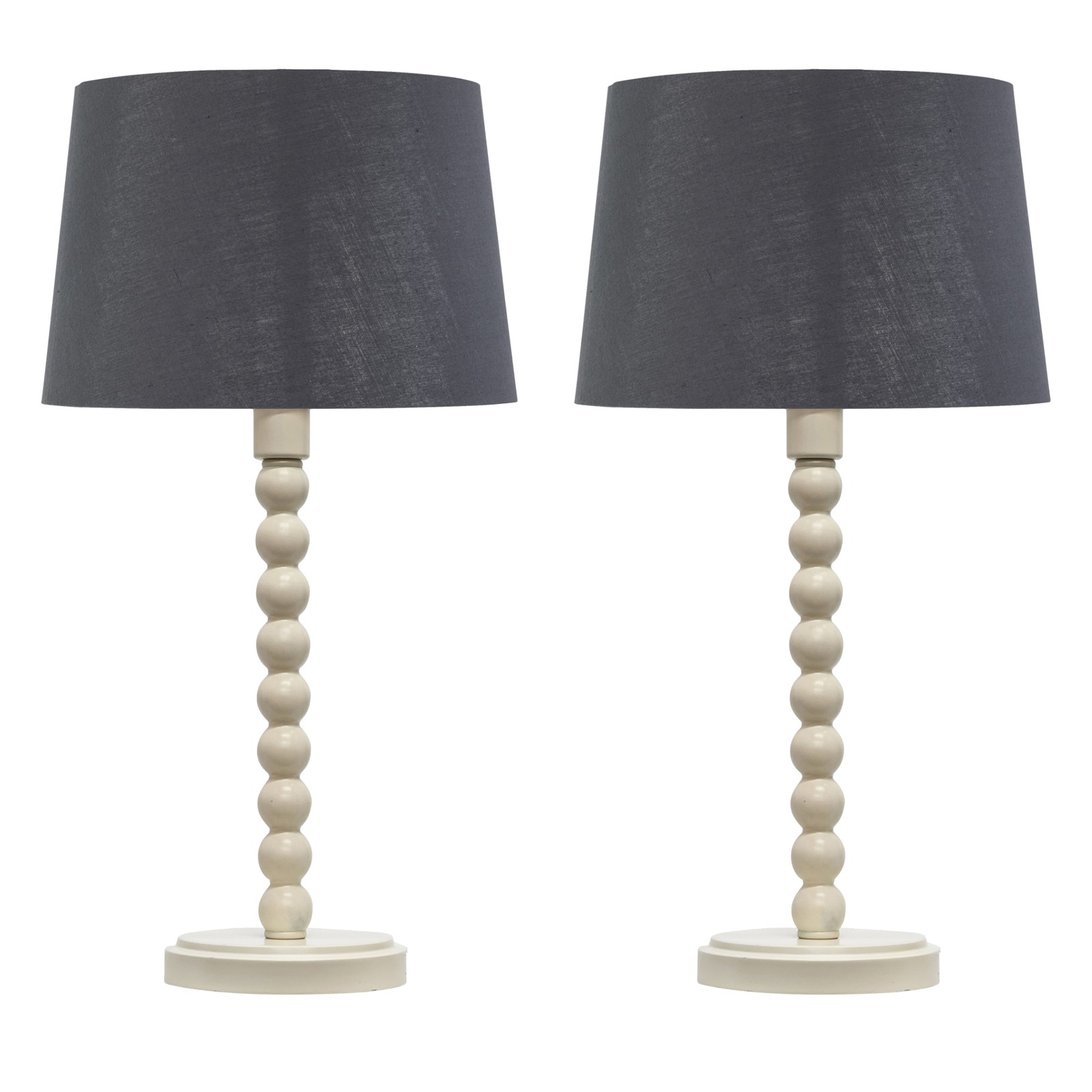 Set of 2 Cream Off White Table Lamp Bedside Lights with Grey Cotton Shades