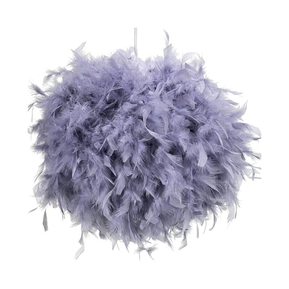 (Grey, 40 cm) Giggi Feather Light Shade | Lamp Shades for Pendant Ceiling Light, Table Lamp, Floor Lamp | Fluffy Feather Lampshade Ceiling Light Shade