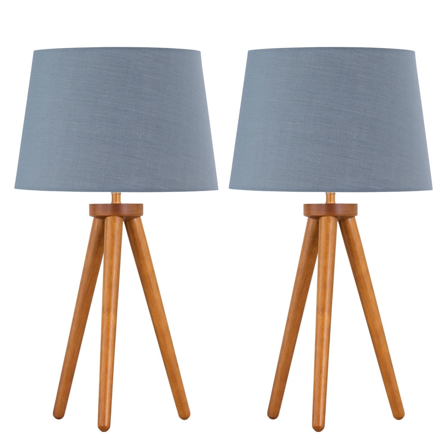 Set of 2 Tripod Table Lamp Bedside Lights Natural Wood 36cm Grey Shades