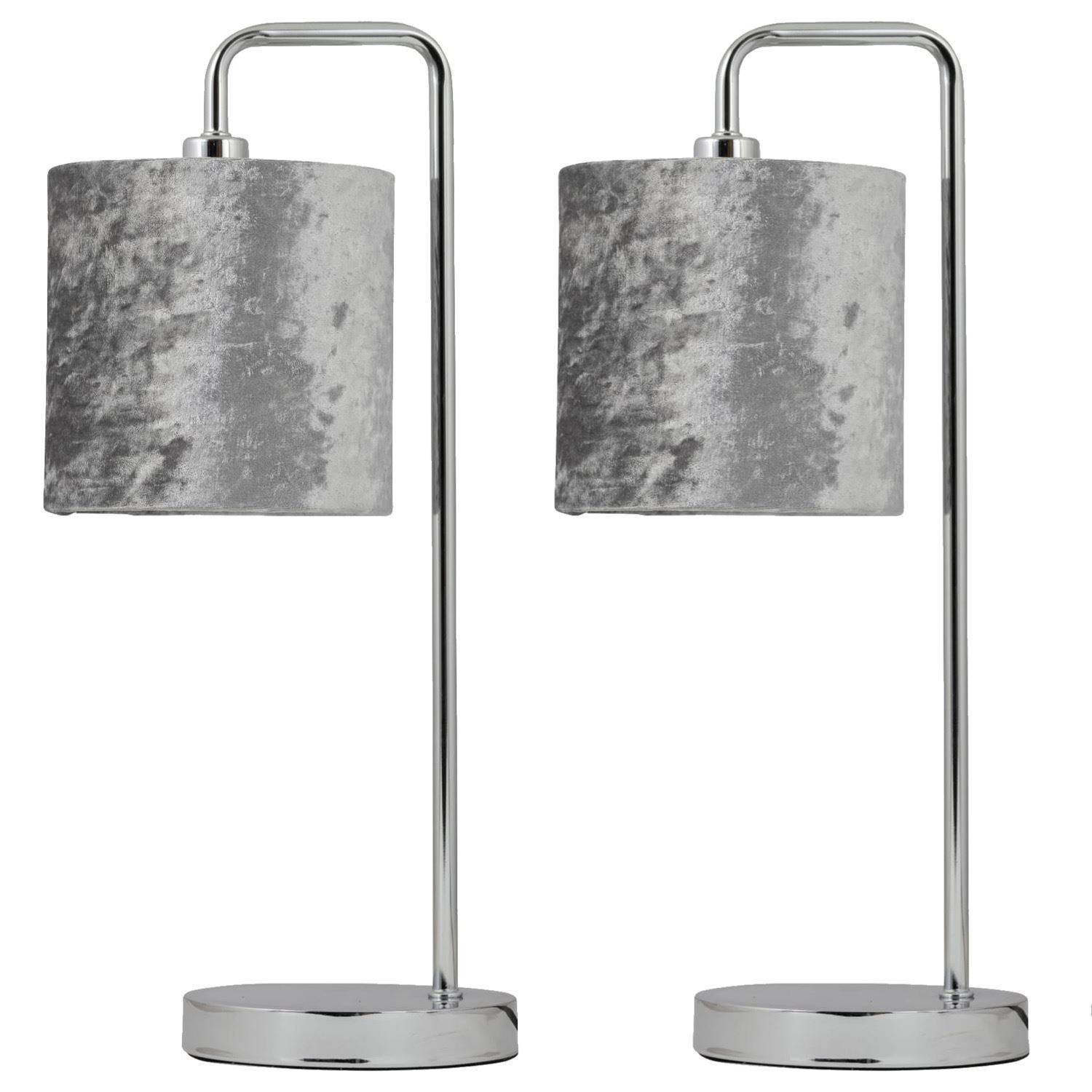 Set of 2 Chrome Arched 45cm Table Lamp Bedside Lights Grey Crushed Velvet Shades