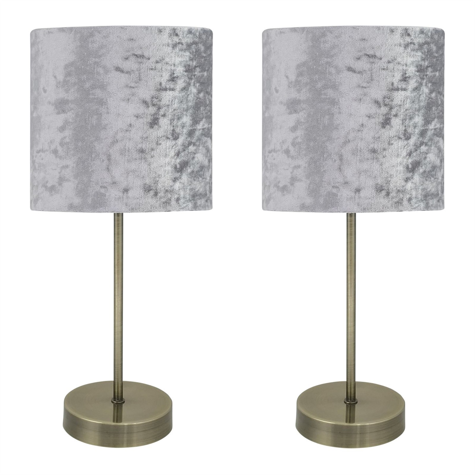 Set of 2 Antique Brass 35cm Table Lamp Bedside Lights Grey Crushed Velvet Shades