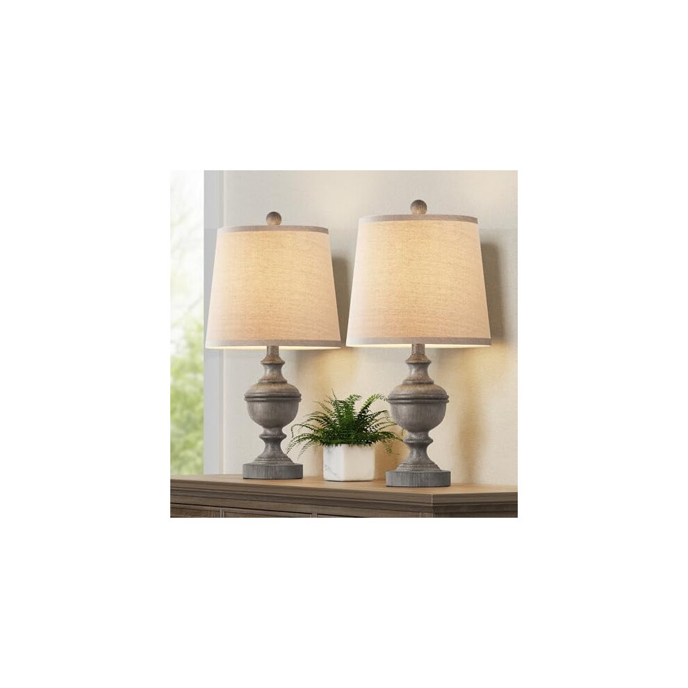 Retro Table Lamps Set of 2, Bedside Lamp for Bedroom Rustic Farmhouse Table Lamps for Living Room, Vintage Nightstand Lamps with White Shades, Grey