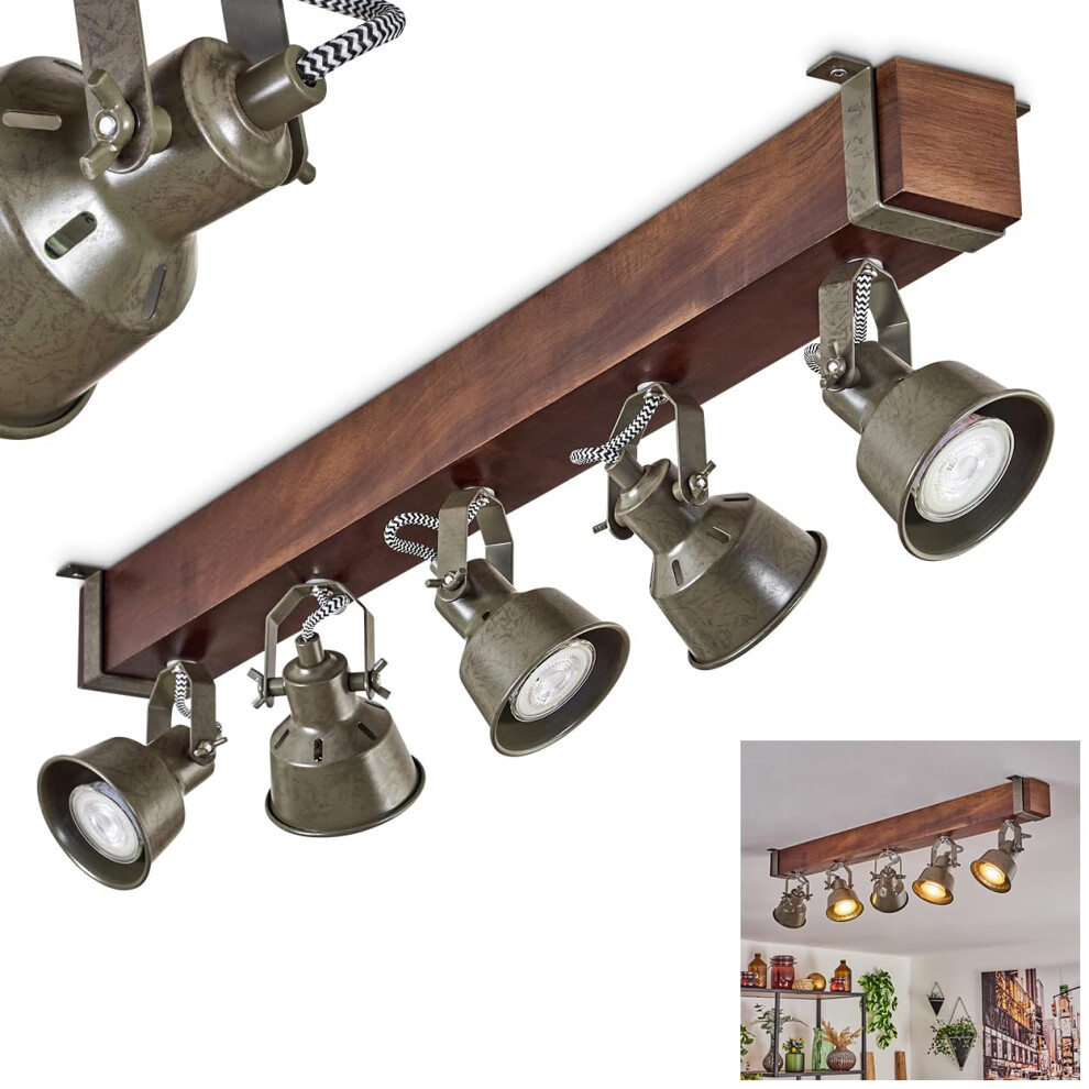 Pehefito Ceiling Light, Modern Ceiling lamp Made of Metal/Wood in Black/Dark Brown/Green-Grey, Industrial Design Ceiling Light with Adjustable Shades,